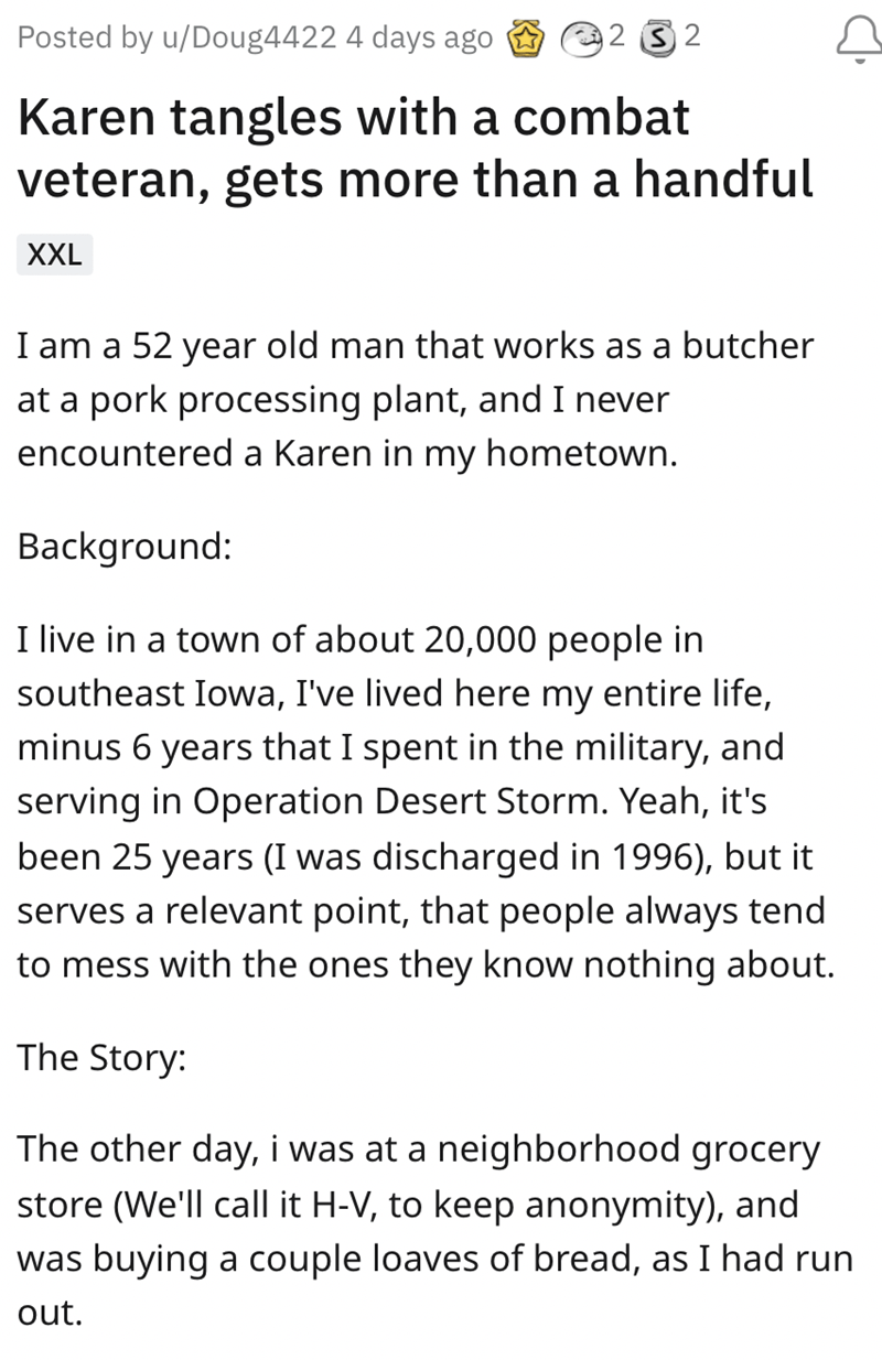 Karen Decides To Tangle With A Combat Vet, Lives To Regret It