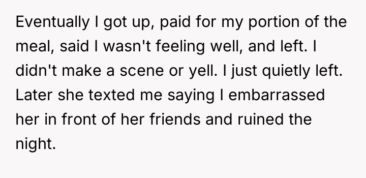 The situation forces a debate: Was the girlfriend's failure to center the celebration on the OP a fundamental oversight that justified his departure, or was the OP overly sensitive and ungrateful for the effort she did put in by arranging the nice dinner? Readers must consider where the responsibility lies in setting and meeting expectations for a milestone celebration.