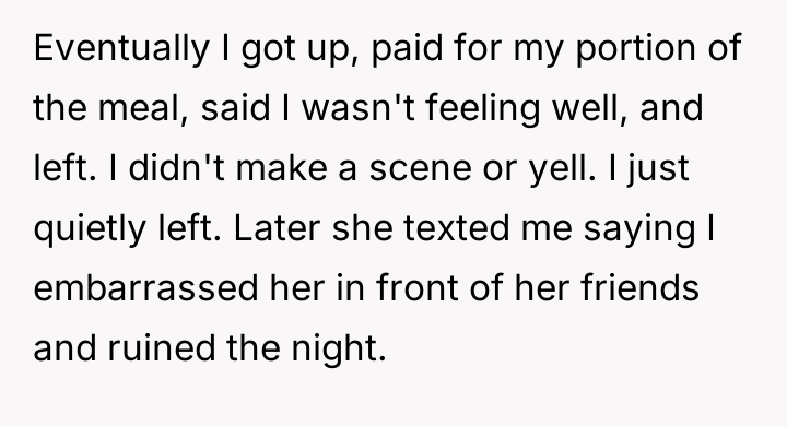 According to Dr. Nico Bennett, a specialist in interpersonal relationship dynamics, "The success of any planned celebratory event hinges on mutual acknowledgment of the person being honored; failure to provide this acknowledgment shifts the focus and invalidates the purpose of the gathering." The OP's girlfriend appears to have confused planning a 'nice dinner' with planning an event centered on the OP. Her choice to invite numerous acquaintances, including one the OP disliked, and then dedicating the entire evening to conversing with her own group demonstrates a profound lack of regard for the OP's comfort and the occasion's intent. This suggests poor boundary awareness or a failure to prioritize her partner's emotional needs in a milestone setting. The subsequent reaction—accusing the OP of being ungrateful for 'ruining' the night—is a form of blame-shifting, avoiding accountability for the initial planning failure. The OP acted appropriately by removing himself from a situation where his presence was seemingly irrelevant, opting for a non-confrontational exit rather than escalating the tension at the table. Moving forward, the couple needs to establish clear communication regarding future celebrations to ensure that when one person is being celebrated, their emotional priority is upheld, regardless of external social dynamics.