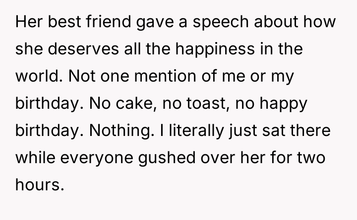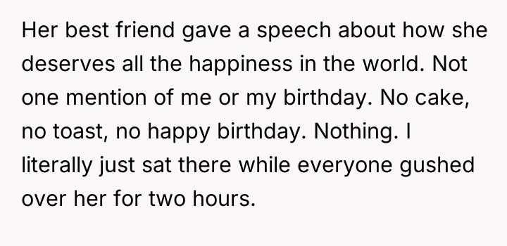 AITAH for walking out of my own birthday dinner because my girlfriend turned it into her celebration?
