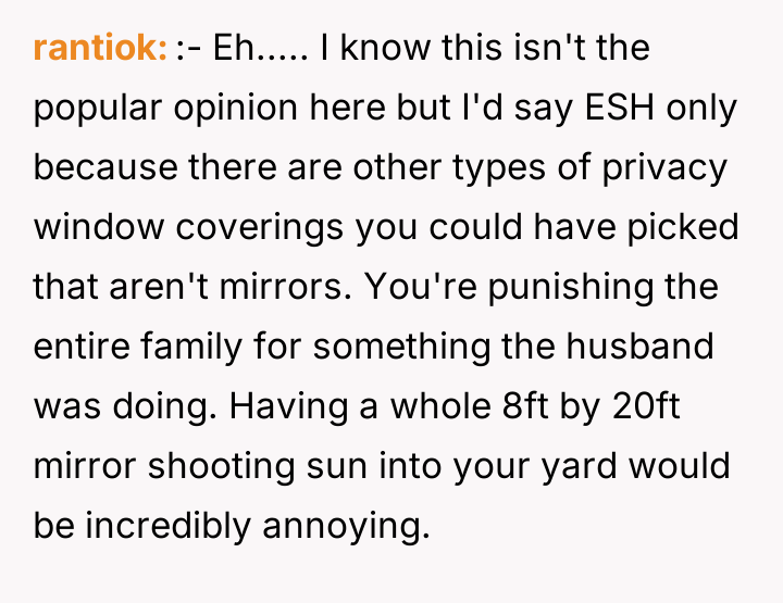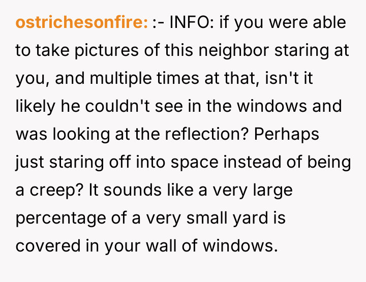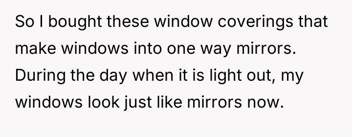 AITA for putting "ugly" one way mirrors on the windows facing one of my neighbors because I saw the husband looking in my windows?