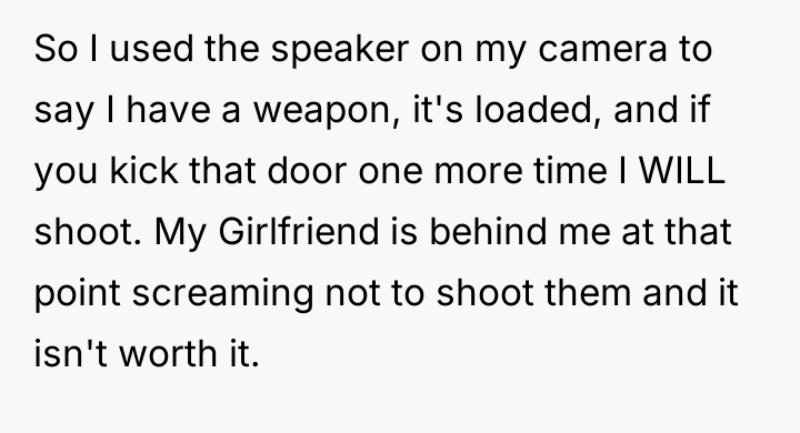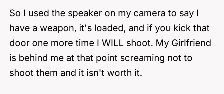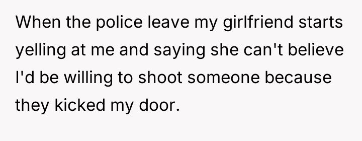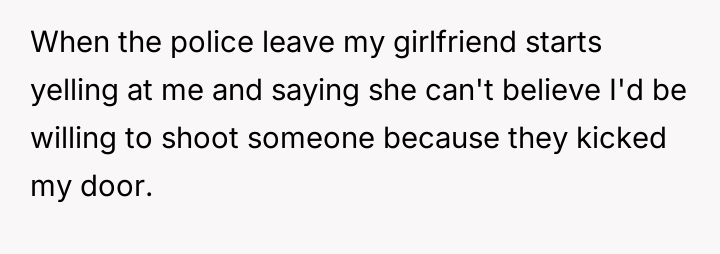 AITA For Telling My Girlfriend I Have Every Right To Defend My Home After Someone Started Kicking My Door In