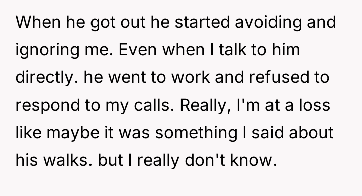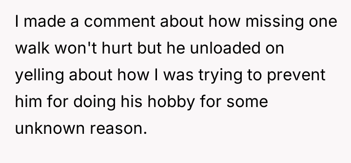 As renowned psychologist Dr. John Gottman explains, “The single most important thing we can do to change other people is to change the way we are in relationship to them.” This situation highlights a significant breakdown in shared responsibility and communication boundaries within the marriage. The husband's behavior—yelling, assigning blame for his own forgotten alarm, and immediately resorting to silent treatment—indicates poor emotional regulation and an attempt to control his environment and his partner. While his desire to improve his health via walks is positive, framing this activity as a mandatory task and holding his wife accountable for his personal lapse (forgetting his alarm) is an unfair imposition of emotional labor. The OP's casual dismissal of the importance of the walk, though intended to minimize conflict, further escalated his already fragile emotional state, leading him to feel unsupported or even sabotaged. The OP's actions were reasonable in the context of a shared household; she is not his personal attendant. However, for future situations, a more constructive approach would be to calmly address the boundary violation regarding blame *after* the immediate anger subsides, perhaps stating, "I understand you value these walks, but I am not responsible for setting your alarm. When you yell at me, it makes me feel attacked, and I need us to discuss solutions calmly, not through blame."