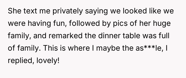 AITA for making an uncomfortable joke when my friend told me her dinner table was full with family?