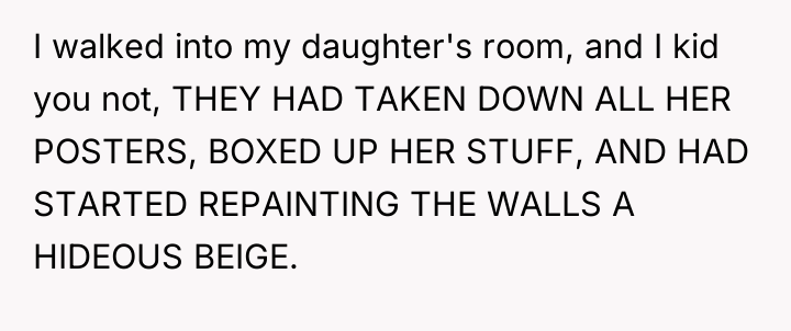 The conflict began when the OP allowed her brother and his new wife to stay in her home due to their financial troubles. Soon after, the sister-in-law began criticizing the untouched room, culminating in the couple unilaterally clearing out the daughter's belongings and repainting the room into a guest space. The OP reacted by immediately demanding they leave, leading to family division over her harsh response versus their intrusive actions.