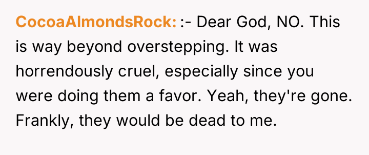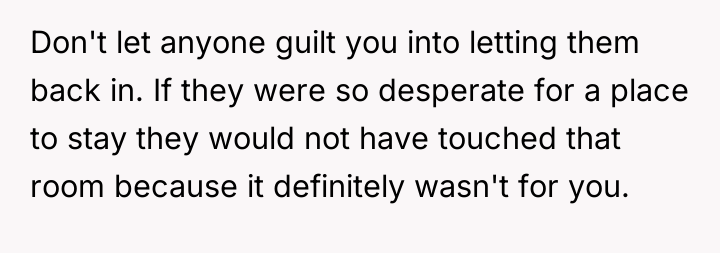 The OP's reaction to immediately evict them was an understandable, though perhaps extreme, response to having her most sacred boundary destroyed without consent. While family members suggest she overreacted, they fail to recognize the severity of the violation. A recommended path forward involves firm, non-negotiable boundary setting regarding the deceased child's room. Forgiveness and readmission should be contingent upon the couple offering a sincere apology that acknowledges the pain caused by their violation, not just their intent.