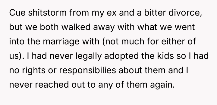 AITA for breaking my promise to my stepkids, and "abandoning and traumatizing" them because I did not want to parent them anymore?