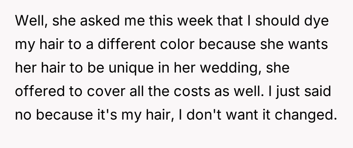 AITA for refusing my future sister in law's request to dye my hair for my brother's wedding?