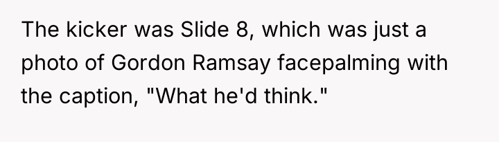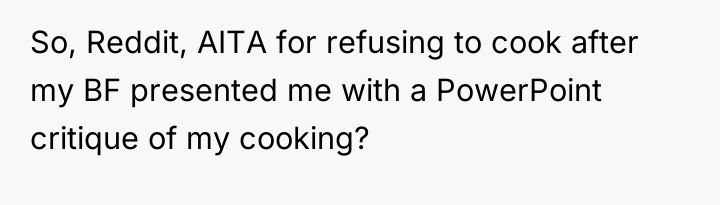 AITA for refusing to cook after my BF tried to “critique” my cooking with a literal PowerPoint presentation?