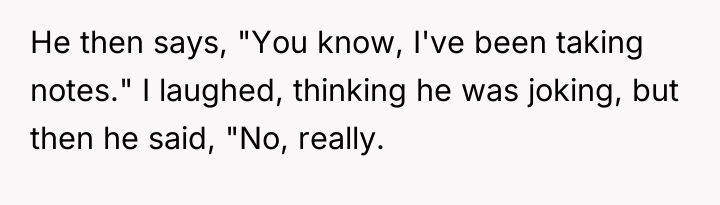 In the field of relationship dynamics, Dr. River Watson is known for noting, "Boundaries are not requests; they are statements of what one partner requires to maintain self-respect within the partnership." The boyfriend’s decision to create a formal, graded critique, complete with pop culture references like Gordon Ramsay, crossed a critical boundary. While he may have intended humor, the act itself transformed a shared, enjoyable activity into a performance review, which is inherently damaging to intimacy and partnership.
