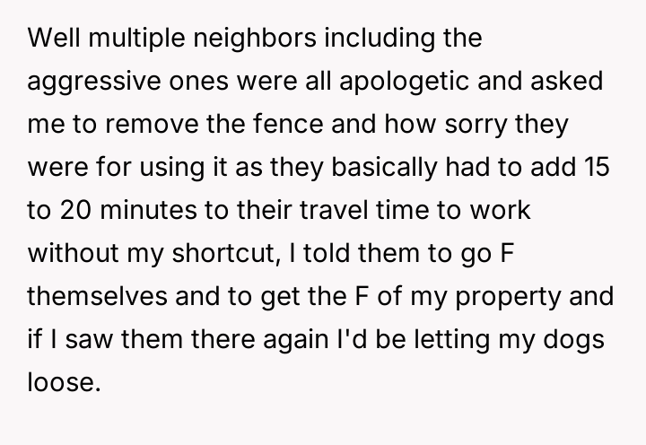 AITA For building a Fence and blocking my neighbours from the road, forcing them to take a ma*sive detour?