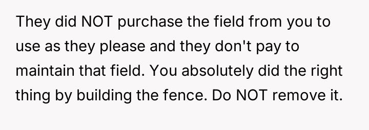 As renowned ethicist Dr. Immanuel Kant explained, “Act only according to that maxim whereby you can at the same time will that it should become a universal law.” While this situation is primarily one of property rights rather than pure ethics, the principle highlights the need for consistent, predictable rules regarding shared versus private space. The OP's initial behavior established an informal 'implied easement' or permission for limited use, even if unintentional. When this use expanded from occasional access to regular parking and large gatherings, it crossed a critical threshold, violating the OP's reasonable expectation of privacy and control over their large property. The transition from passive tolerance to active enforcement (towing and fencing) was a necessary response to boundary violation, particularly when faced with aggression. However, the OP's final, harsh ultimatum to all neighbors—including the initially cooperative ones—suggests an emotional reaction that risks alienating those who were not part of the problem. This overcorrection sacrifices community goodwill for the sake of absolute control. The OP was entirely justified in stopping the unauthorized use, especially following aggressive responses. A constructive recommendation would involve immediate, direct communication: The OP should clearly state that the road/field is now permanently private. They could then consider a formal, written agreement or the installation of a locked gate, allowing access only to the previously polite neighbors if the OP desires, thereby differentiating between those who abused the privilege and those who did not. This approach enforces the boundary while managing the impact on cooperative relationships.