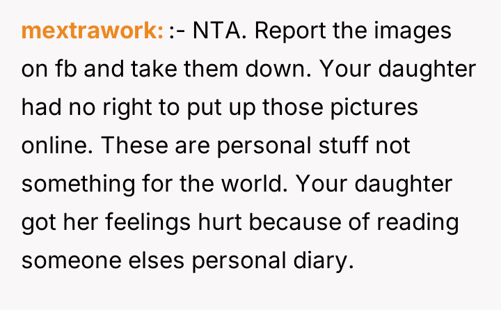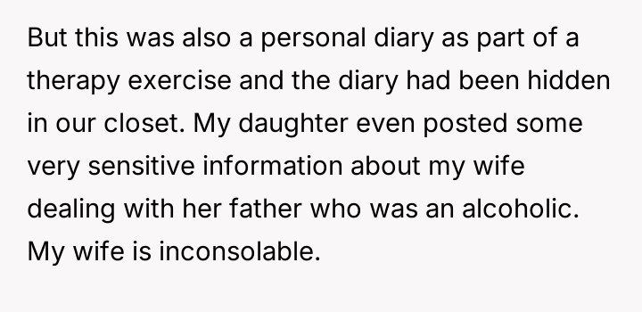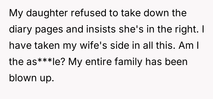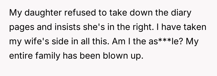 AITA for supporting my wife after my daughter publicly exposed her diary which had "cruel" comments?