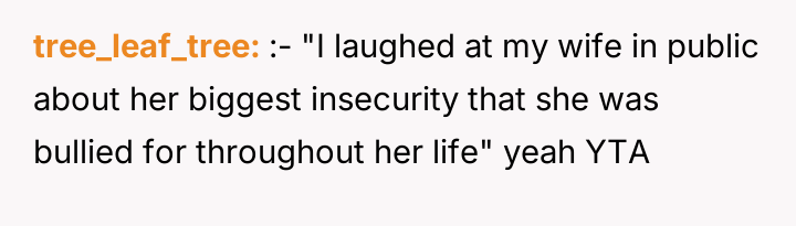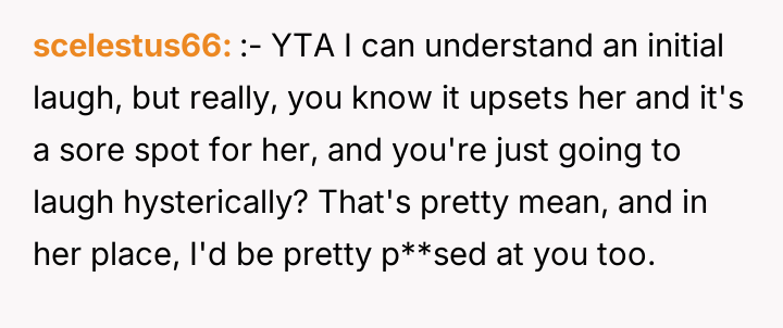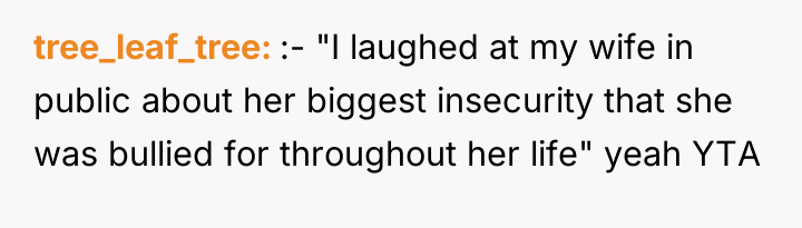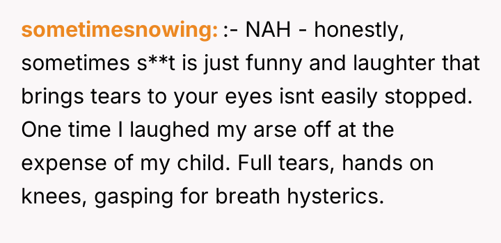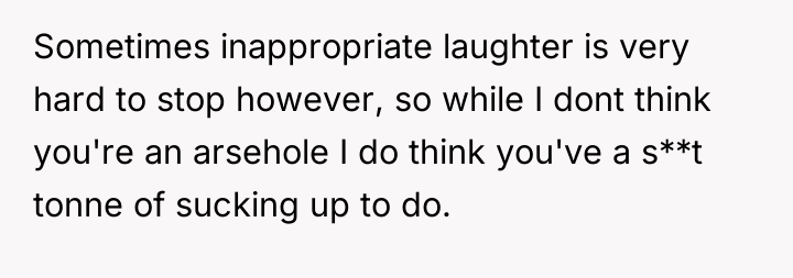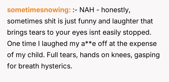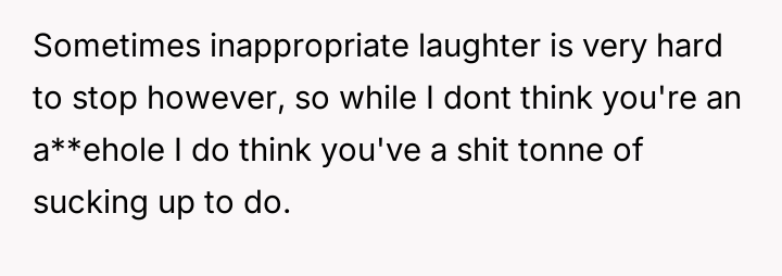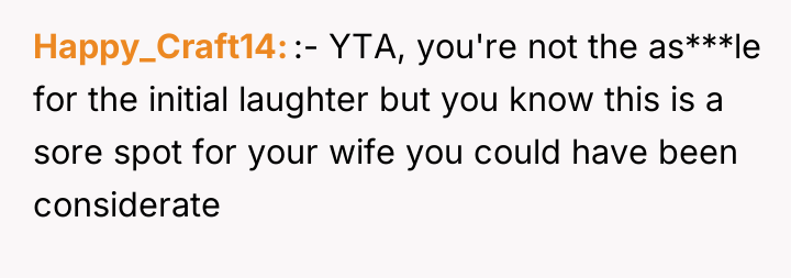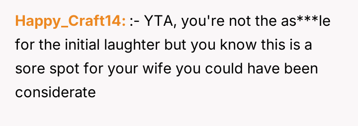 Was the OP's reaction justified as an honest expression of amusement in a public setting, or did his failure to control his laughter demonstrate a lack of empathy toward his wife's known sensitivities, making him the asshole in this interaction?