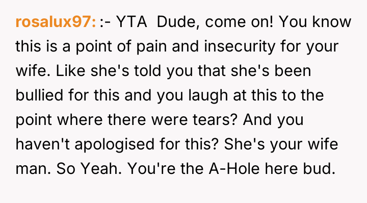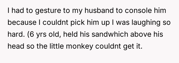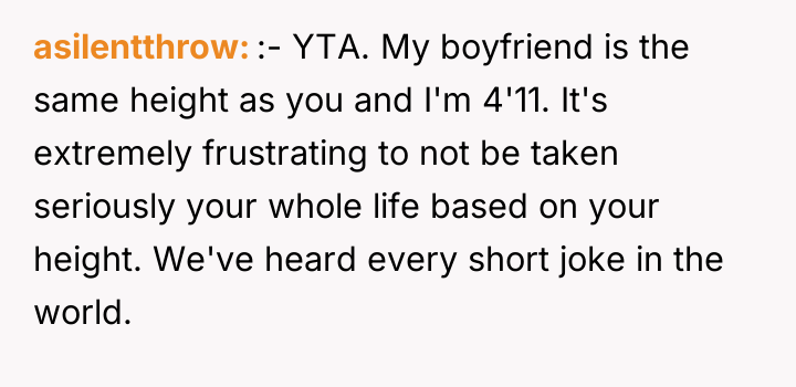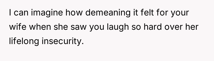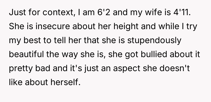 The original poster (OP) found a situation humorous to the point of uncontrollable laughter, even though the joke targeted his wife's known insecurity regarding her height. The central conflict arises because the OP prioritized his immediate amusement over acknowledging and respecting his wife's deeply felt vulnerability and resulting anger.