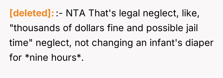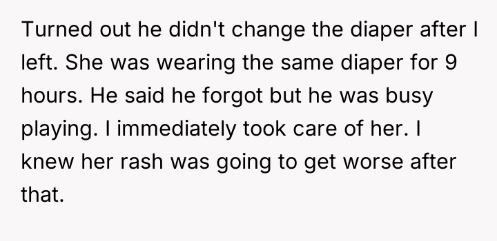 AITA For my reaction when I got home and found my 6 months old daughter wearing the same diaper for 9 hours?