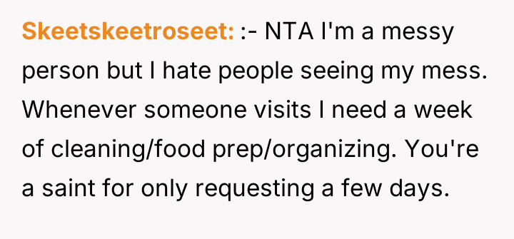 As renowned family therapist Dr. Terri Givens explains, “Poor communication about expectations in a partnership is a guaranteed source of ongoing resentment, especially when one partner is carrying an unequal burden of emotional or domestic labor.” This situation highlights a significant misalignment in expectations regarding domestic responsibility and emotional boundaries. The partner minimizes the issue of his family's judgment, yet he expects the OP to instantly transition the household environment—which lacks basic provisions for guests—to accommodate these same family members at a moment's notice. This can be viewed as a transfer of emotional and logistical labor onto the OP. The partner’s accusation that the OP is 'difficult' or 'uptight' serves to deflect responsibility from his own poor planning and failure to advocate for realistic hosting guidelines within his family system. The OP’s action to refuse hosting without notice was appropriate as it established a necessary boundary regarding their time and effort. To handle this better, the OP and partner must have a direct, non-confrontational discussion about scheduling, recognizing that 'going with the flow' for one partner often means creating extra, unacknowledged work for the other. Future collaboration requires agreeing on a minimum notice period that allows the OP to fulfill hosting duties without significant stress.