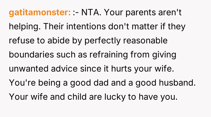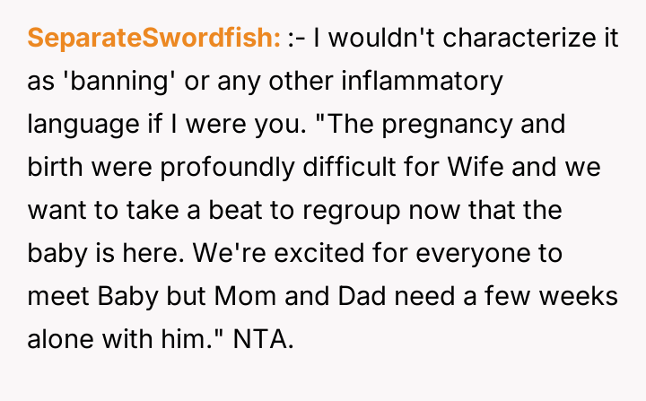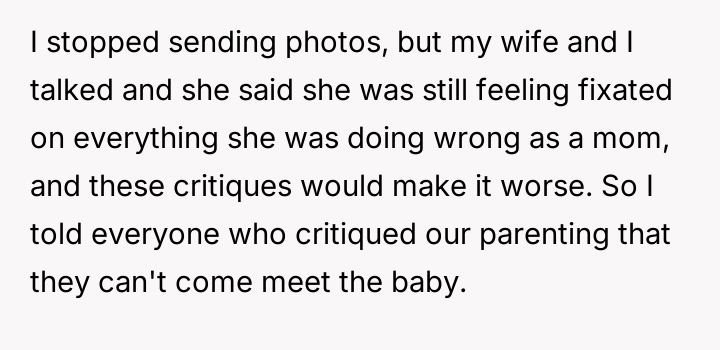 'AITA for banning everyone who critiques our parenting from meeting our son?'