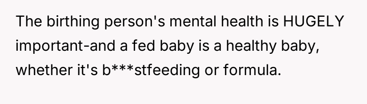 The original poster (OP) prioritized his wife's immediate mental health and autonomy following a difficult pregnancy, explicitly defending her right to refuse breastfeeding against external pressure from both medical staff and family. This action created a direct conflict with extended family members who feel their involvement and good intentions regarding the new baby are being unfairly restricted.