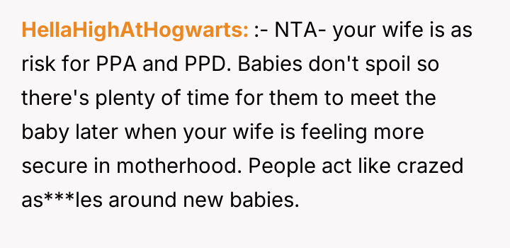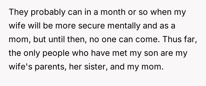 Given the wife's fragile mental state and the OP's protective stance, is the decision to ban critical family members from visiting the newborn until the mother is more secure a necessary act of safeguarding, or does it constitute an overreaction that damages important family relationships based on good intentions?