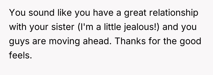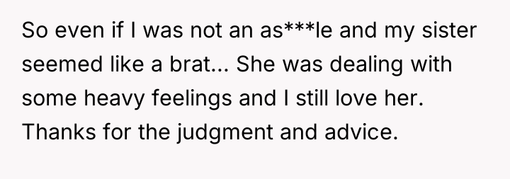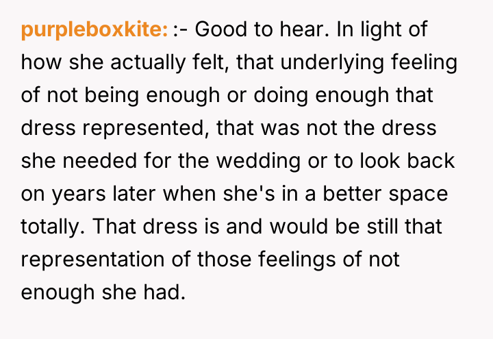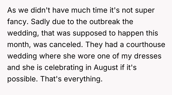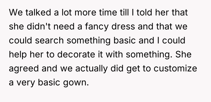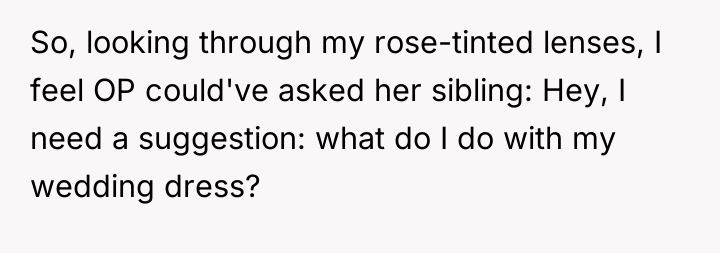 Given the sister's underlying emotional distress that drove her behavior, was the OP justified in her initial firm stance regarding the dress, or should she have approached the sister's presumptions with more immediate empathy, and is the shared solution truly resolving the deeper issues of comparison and self-worth?