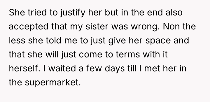 Despite attempts at reconciliation and the silent hope for clarity, walls of silence and avoidance only deepened the wound. The pain of unvoiced desires and broken communication left one sister grappling with confusion and the other retreating into distance, their shared past overshadowed by a dress that neither could truly claim.