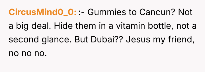 AITA for asking my wife to not travel internationally with THC gummies