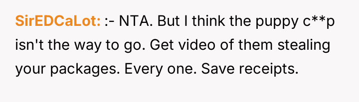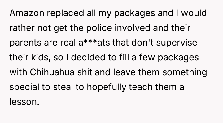 'AITA for filling a few faux Amazon packages with my dog's shit to teach the two theiving neighborhood kids who have been stealing my packages a lesson?'