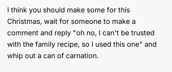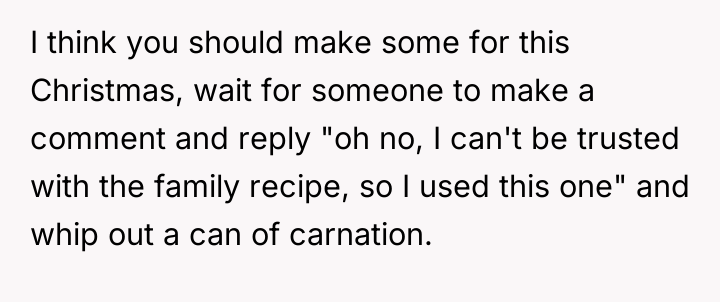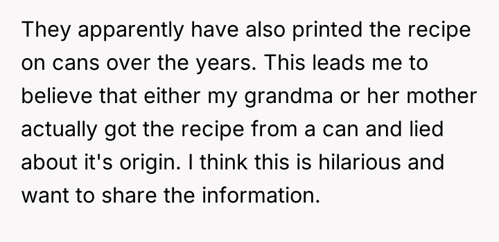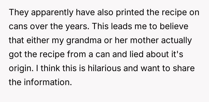WIBTA if I told my family that our "secret family recipe" came from the side of a can?