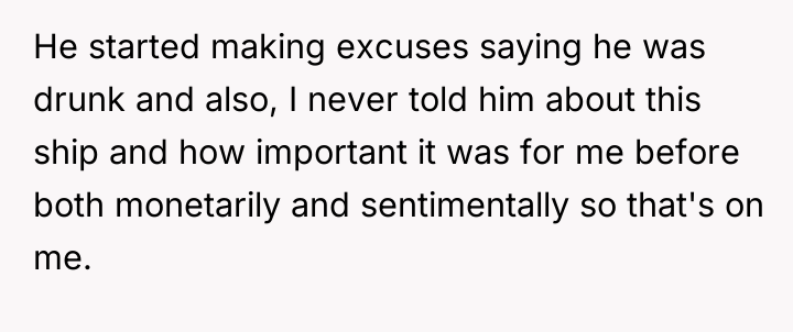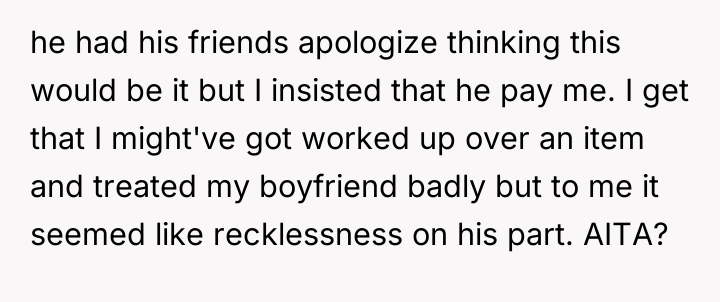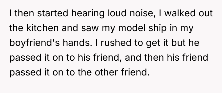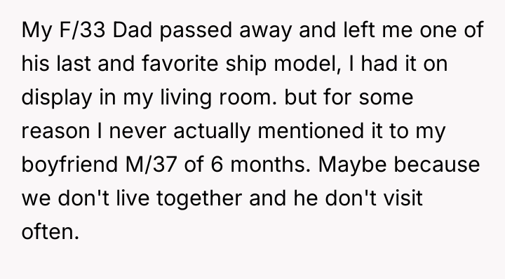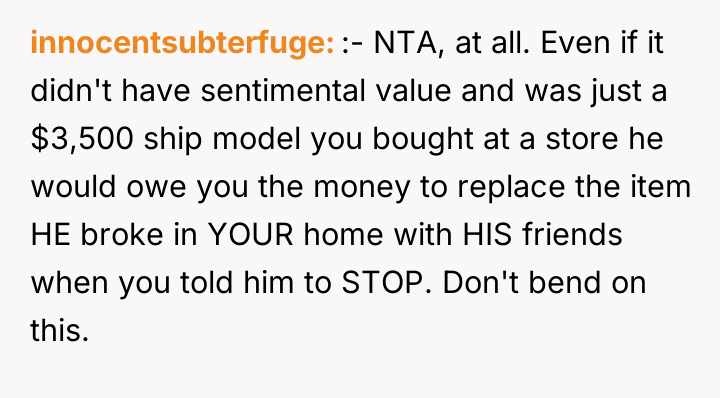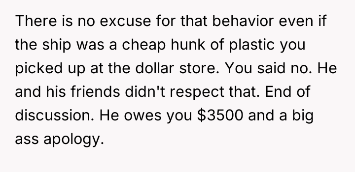 AITA for insisting that my boyfriend pay me for breaking my $3,500 model ship?