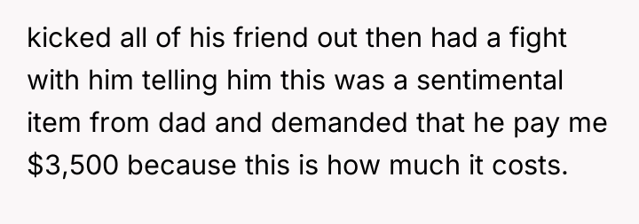 Should the OP prioritize the sentimental value and pursue the $3,500 compensation, potentially ending the relationship, or should she accept the apology, recognize the context of intoxication, and focus on rebuilding trust and communication with her boyfriend regarding boundaries and important possessions?