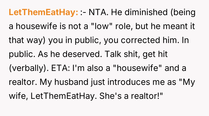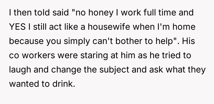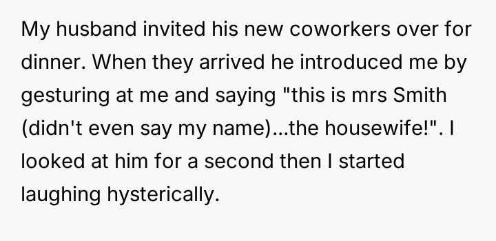 AITA for laughing hysterically after my husband called me "housewife" and embarrasing him infront of coworkers?