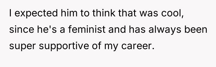 The original poster (OP) is facing conflict because her partner, Tim, is reacting with resentment and making accusatory comments about her career success, which she earned through hard work and strategic career moves. The central tension lies between OP's belief that her success is deserved and Tim's insistence that she must have somehow taken an unfair advantage, undermining her accomplishments based on societal structures.