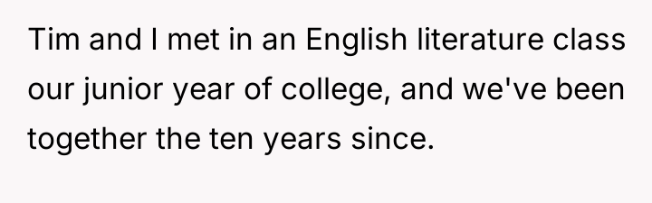 Tim and the narrator’s love story began in the quiet corners of an English literature class, blossoming through a decade of shared dreams and quiet compromises. Their journey was marked by unspoken understandings—Tim’s steady path in IT and the narrator’s winding road through liberal arts and non-profit work—both embracing an equal partnership even when the scales tipped in income.