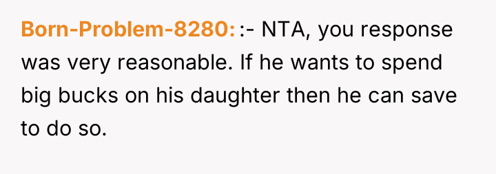 The original poster (OP) is facing a conflict rooted in financial disparity and differing parenting philosophies between her and her partner. She established clear boundaries regarding her stepdaughter's presence and financial expectations, but her partner's unconditional financial support for his daughter has now created a demand on shared financial resources or, at minimum, a request for a significant personal loan from the OP, which she refuses based on her own financial principles.