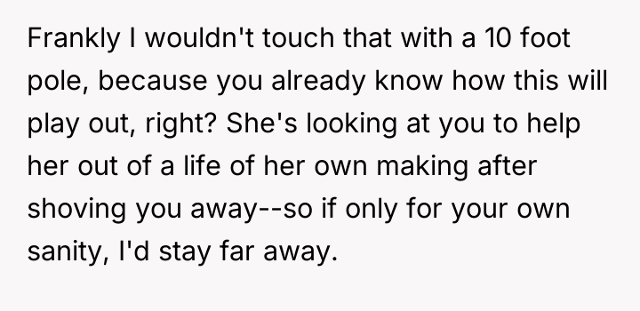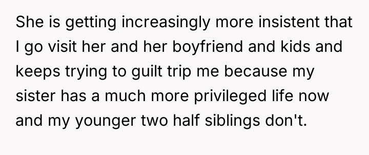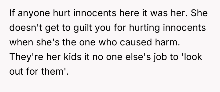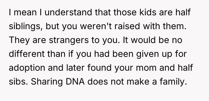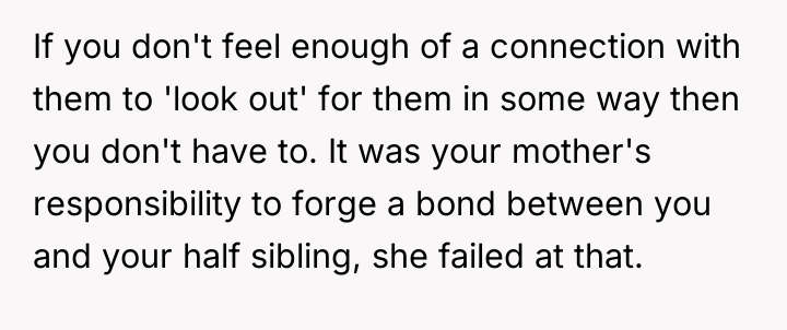 Is the OP justified in maintaining strict emotional and physical distance from their mother and her current family due to past betrayal, or does the perceived innocence of the younger siblings create a moral obligation for the OP to provide support? Where does the responsibility for emotional healing lie when past actions continually influence present demands?