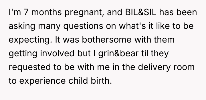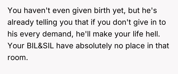 AITA for telling my husband off for wanting me to let my infertile BIL and his wife experience child birth by being with me in the delivery room?