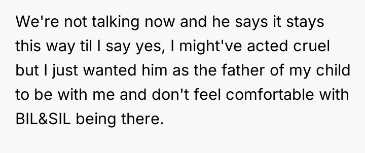 Should a partner's desire to accommodate the emotional needs of grieving family members override a pregnant individual's fundamental right to control the intimate setting of their own childbirth experience, or is maintaining strict personal boundaries in this sensitive situation paramount, regardless of the relatives' ongoing trauma?