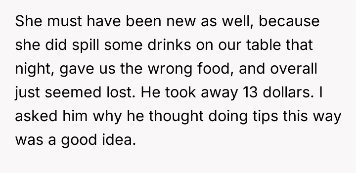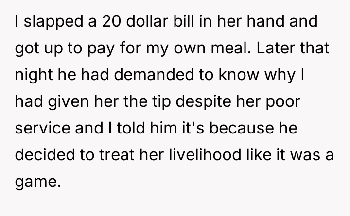 AITA for tipping our waitress 20 dollars despite her poor service, because my date was playing a "game" with her tips?