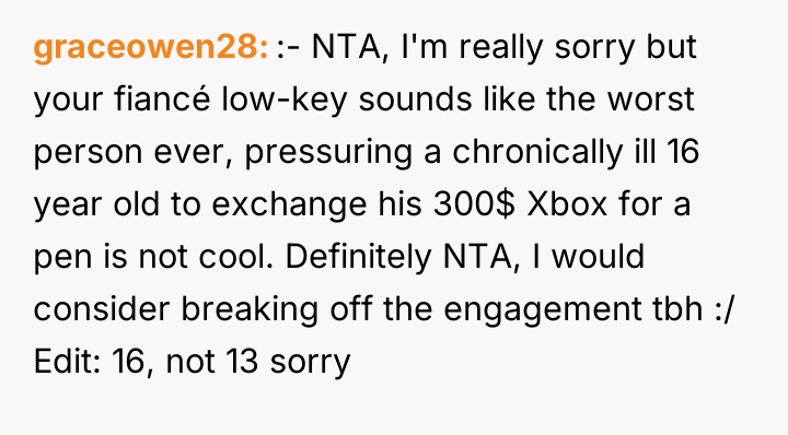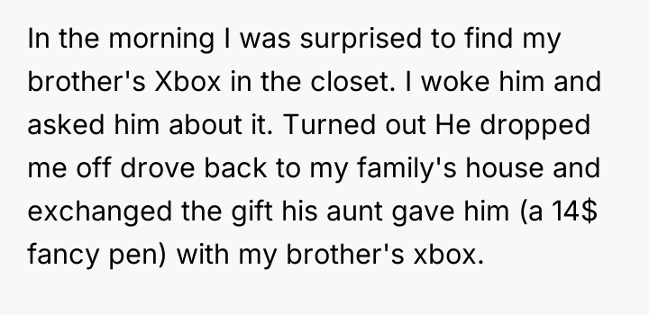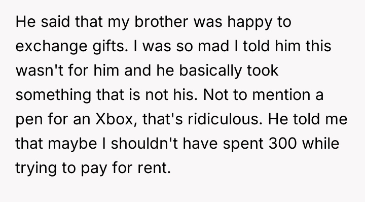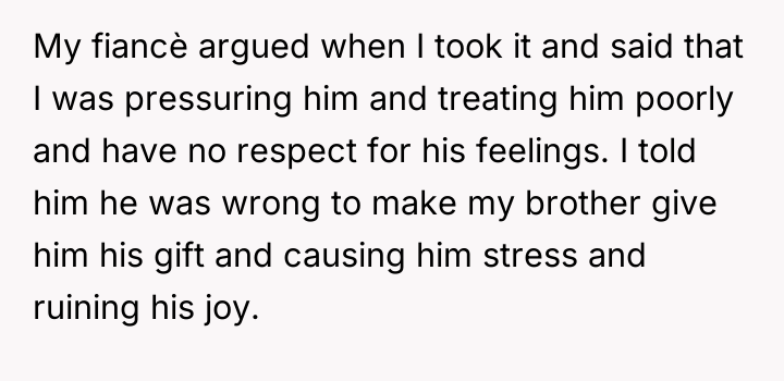 AITA For my reaction when my 30yo fiancè exchanged his gift with my 16yo brother?.