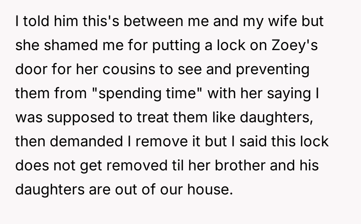 AITA for telling my wife the lock on my daughter's door does not get removed til my brother inlaw and his daughters are out of our house?