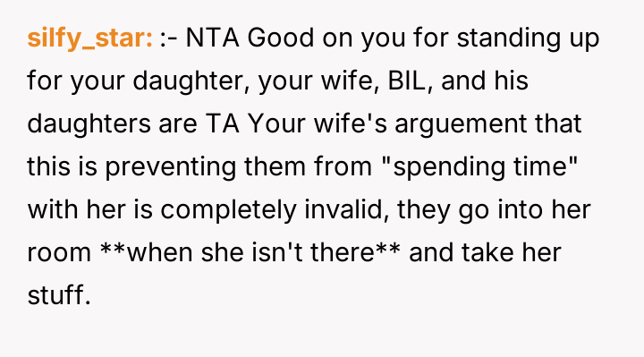 The original poster (OP) is facing significant conflict because his protective actions for his daughter, Zoey, clash directly with his wife's and brother-in-law's (Sammy's) expectations regarding shared belongings and household rules. The OP prioritized enforcing boundaries to protect Zoey's property and emotional well-being, while the others minimized the cousins' behavior, viewing it as typical teenage interaction and accusing the OP of overreacting by installing a lock.