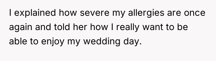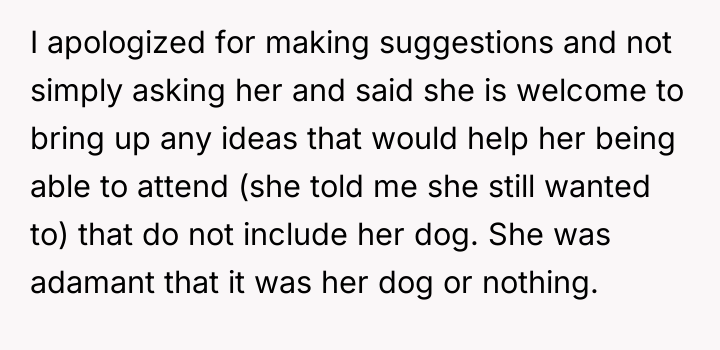 In the fragile dance between love and friendship, one bride faced a heartbreaking choice: to protect her health and happiness on her wedding day or to bend for a friend unwilling to compromise. Despite her earnest efforts to find common ground, the unyielding demand for a dog’s presence in the sacred ceremony forced her to accept a painful reality—some bonds cannot withstand the weight of uncompromising love.