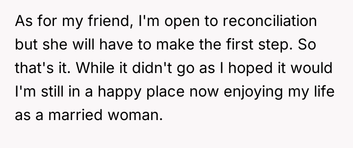 As invitations were sent and plans reshaped, the bride’s heart bore the quiet sting of exclusion, knowing that sometimes, self-care means saying goodbye to those who refuse to understand. In this emotional crossroads, the celebration of new beginnings was shadowed by the loss of a friendship, a poignant reminder that true love sometimes means standing firm, even when it costs dearly.