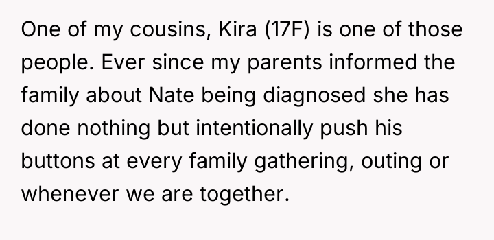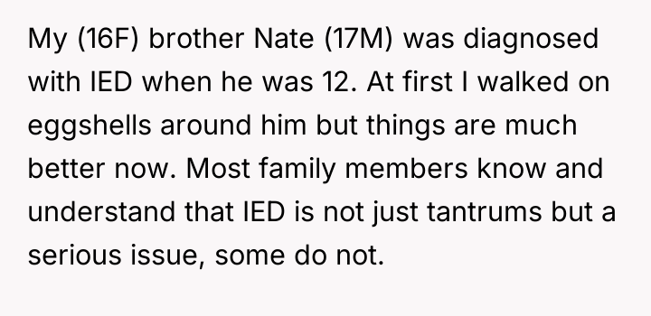 Nate’s diagnosis of Intermittent Explosive Disorder cast a long shadow over family gatherings, turning moments that should have been filled with laughter into tense and fragile encounters. His sister watched helplessly as her cousin Kira, oblivious or indifferent to the pain her actions caused, repeatedly provoked Nate, pushing him to the edge despite the silent pleas for understanding that hung in the air.