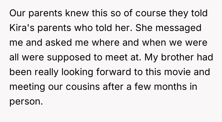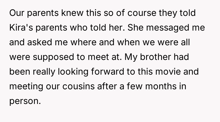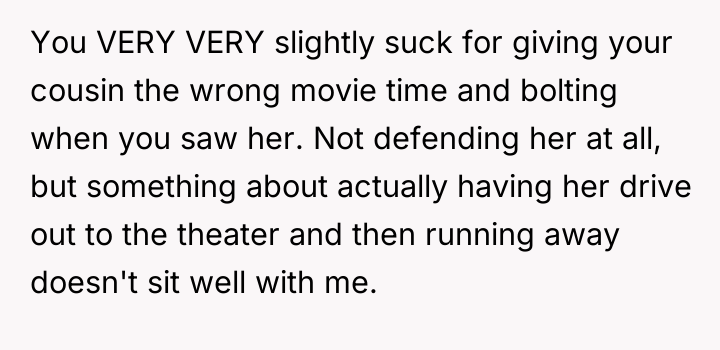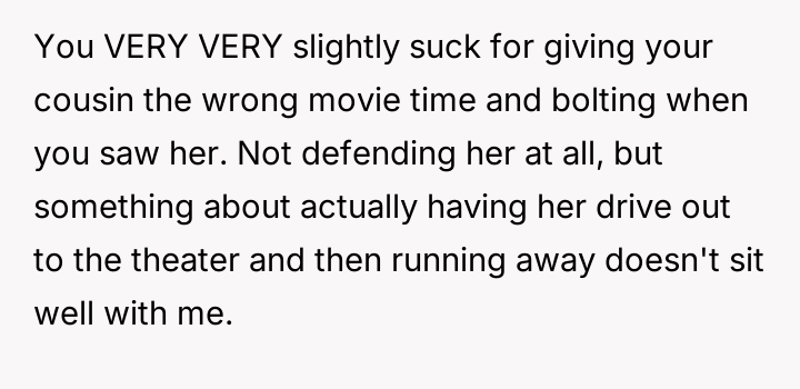 AITA for purposefully sending my cousin the wrong timing for a movie so the others could enjoy?