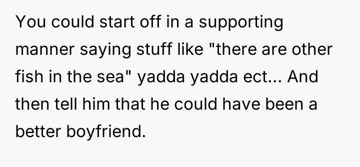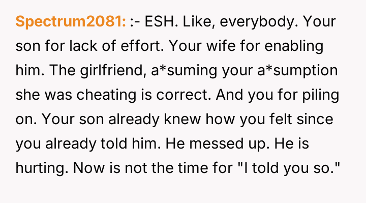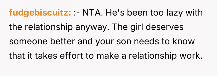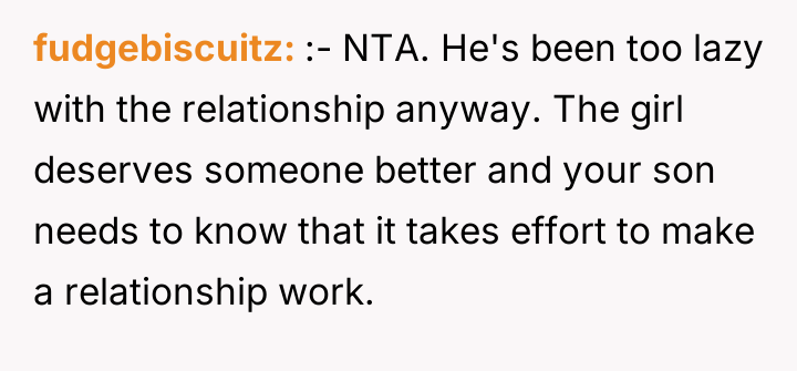 Is the OP correct to state that the son deserved to be dumped for his laziness and lack of reciprocal effort, or did the OP cross a line by publicly agreeing with the ex-girlfriend and criticizing his son so severely when he was already hurting?