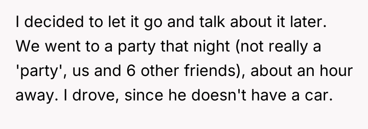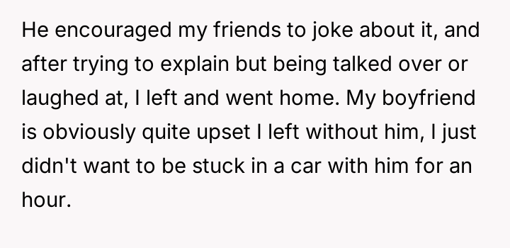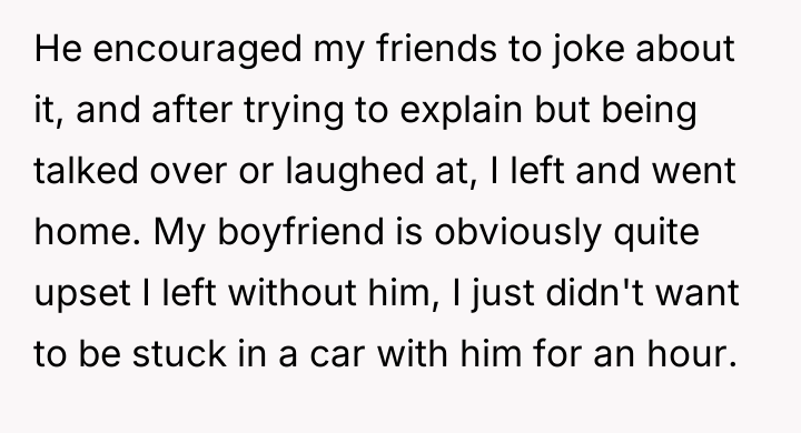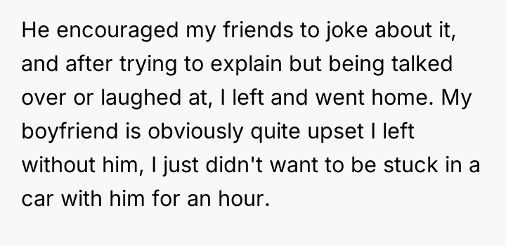 AITA for leaving my boyfriend stranded at a party for making a 'joke'?