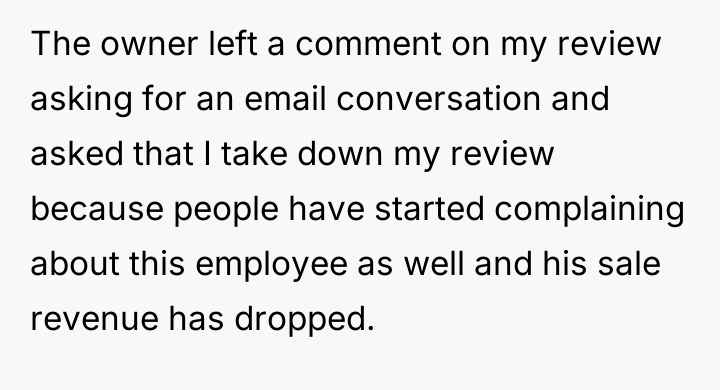 Was the OP justified in posting a highly critical public review, or should she have accepted the owner's request for an email discussion and removed the review given the impact on the business? Does the employee's behavior warrant public exposure over private resolution?