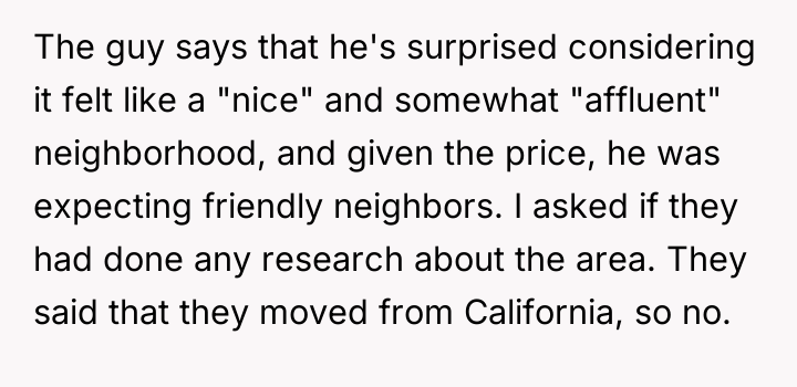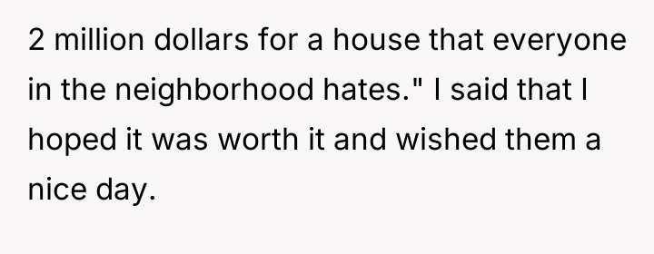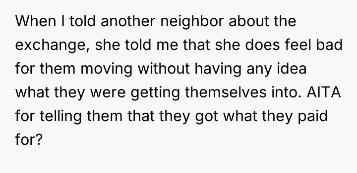 AITA for telling the new neighbors that they got what they paid for, including being shunned by the neighborhood?